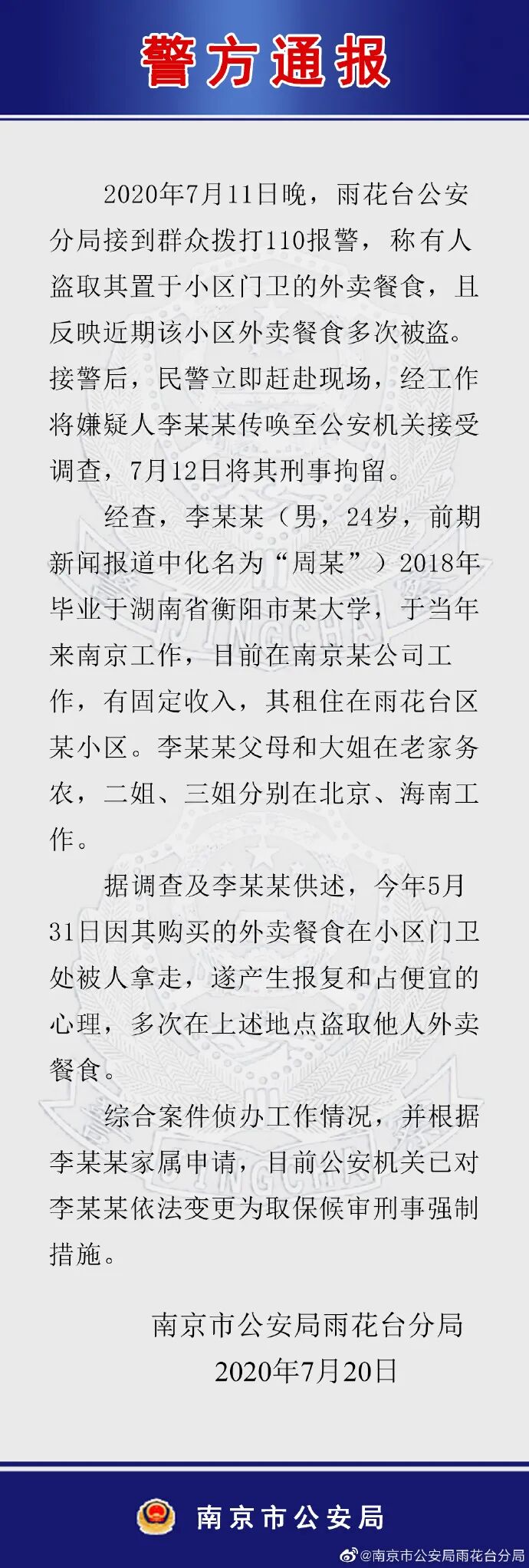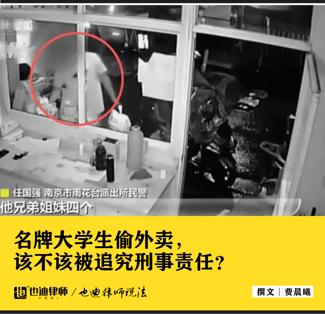 报道称周某是某知名大学本科生,正在准备考研,为了供他读书,家中的3个兄妹都辍学了。很多网友认为周某很可怜,其家境贫寒,家里3个兄妹都辍学了,应该放他一马,不要断绝了一家的希望,应当不追究其刑事责任。对此我持反对意见,周某是成年人,应当为自己的行为负责,除非周某具有未成年、盲聋哑或认罪认罚等法定情节,否则不应当从轻、减轻甚至免除其刑事责任。我认为这件事中更可怜的是无缘无故被偷去外卖饿肚子的受害者以及周某家里被迫辍学的3个兄妹。